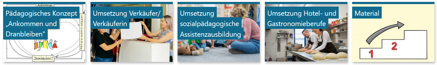 Für die einzelnen Bildungsgänge wurden sogenannte Basiskompetenzen identifiziert, die besonders bedeutsam für einen erfolgreichen Ausbildungsabschluss sind.  Ziel dabei ist, dass basierend auf den Ergebnissen der Eingangsdiagnostik Schülerinnen und Schüler individuell Trainingsmaterialien zu den jeweiligen Basiskompetenzen erhalten. Eine Sammlung von Trainingsmaterialien sind im Kurs Ankommen und Dranbleiben: Basiskompetenzen stärken enthalten.