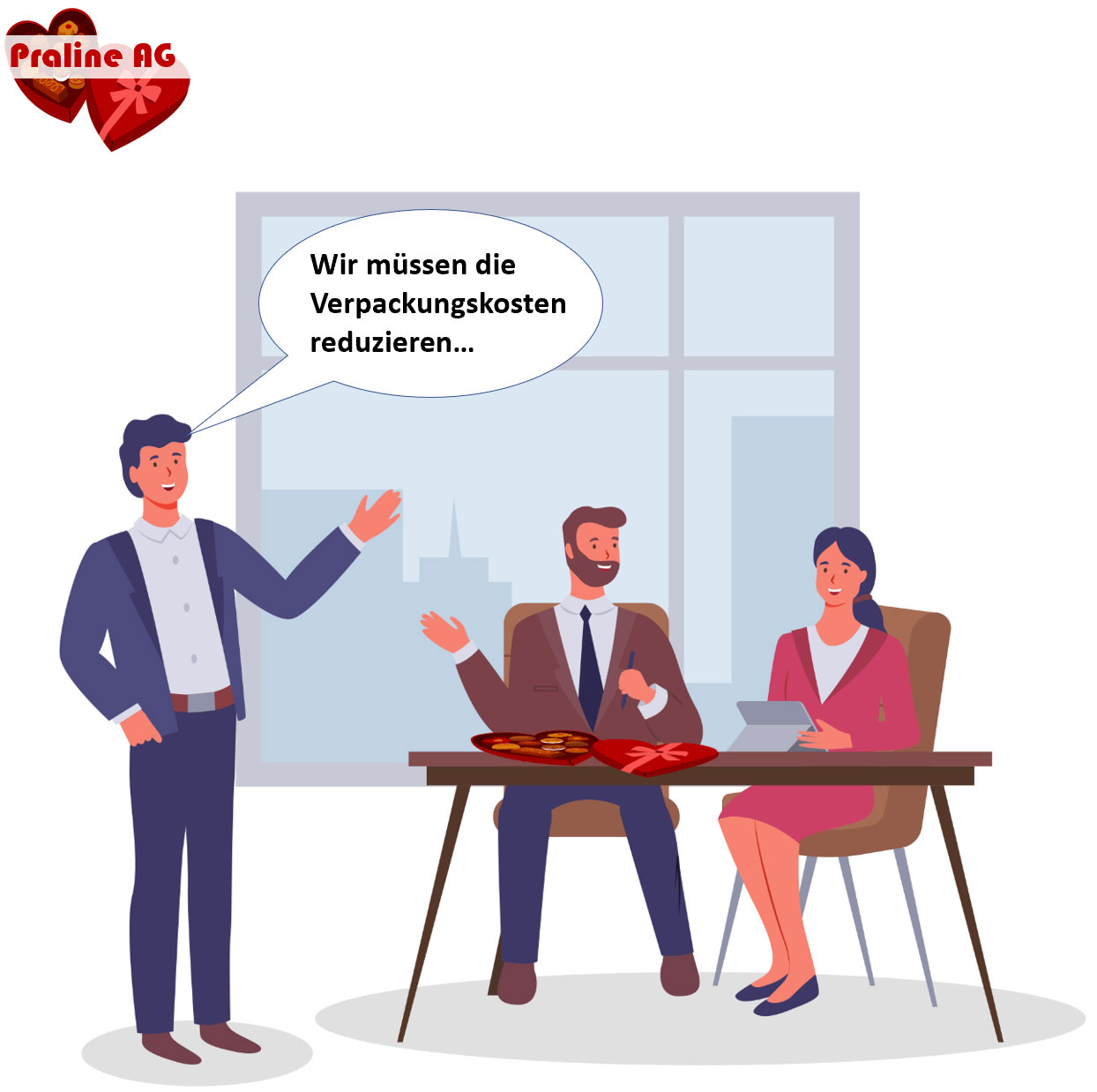 Der Projektleiter beauftragt auf der einen Seite die Abteilung, die für den Zuschnitt zuständig ist, eine Lösung für die Sonderedition zu finden. Auf der anderen Seite soll ihm aber auch das Controlling Berechnungen zur Schachtel liefern. Sie sind Praktikantin/Praktikant bei der Praline AG und unterstützen die Mitarbeitenden in den Abteilungen Zuschnitt und Controlling.