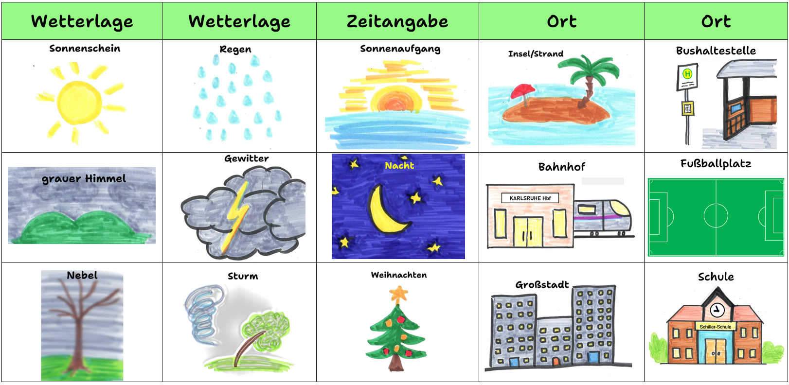 - die Gestaltung von Raum und Zeit in einer Geschichte untersuchen,