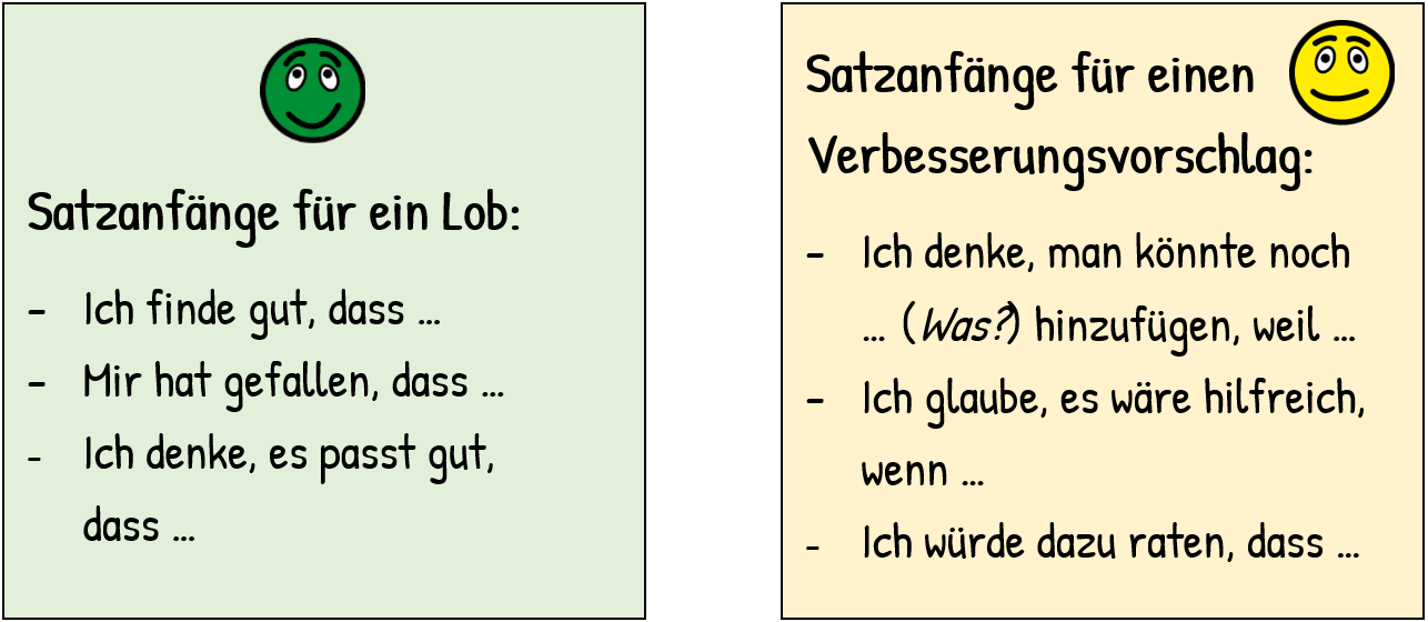 - ein Arbeitsergebnis in der Klasse präsentieren,