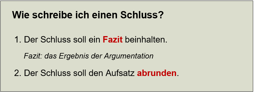 - Möglichkeiten zur Abrundung eines Aufsatzes nennen.