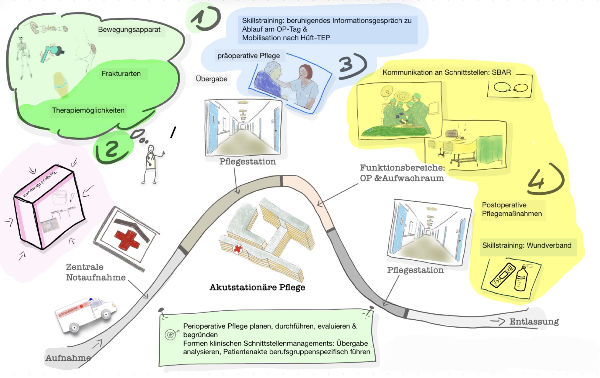Fall im Zentrum der Lernsituation Im Rahmen Ihrer Ausbildung zur generalistischen Pflegefachperson sollen Sie u.a. Grundlagen der chirurgischen Pflege und Grundwissen zum Setting der akutstationären Pflege in einem Krankenhaus erwerben. Sie lernen die verschiedenen Stadien eines beispielhaften klinischen Versorgungspfades kennen.