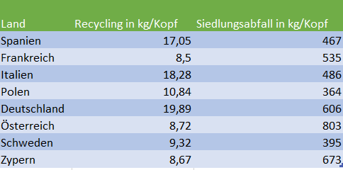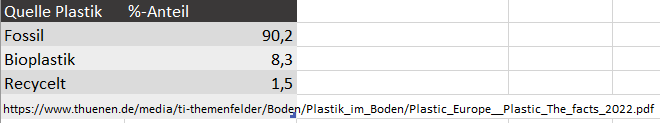 Hier sind Tabellen und Diagramme bezüglich Plastikproduktion und Recycling abgelegt.
