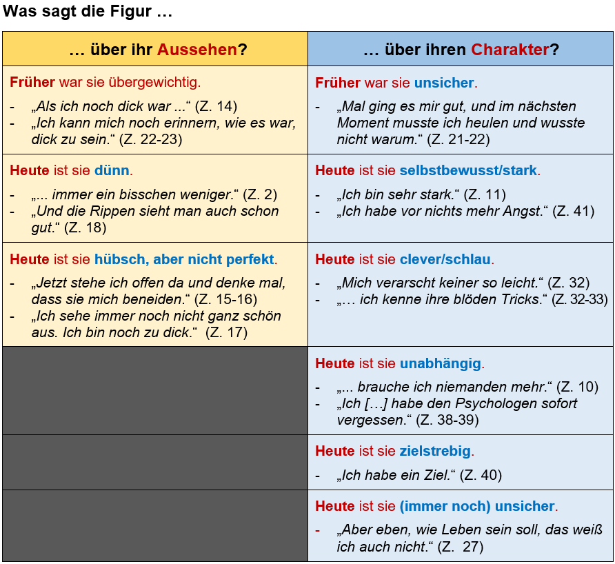 ⚠️Hinweis: Zu den meisten Aussagen gibt es weitere Belege im Text. Falls Sie andere Textbelege notiert haben, können diese trotzdem richtig sein. Wenden Sie sich im Zweifelsfall an Ihre Lehrkraft.