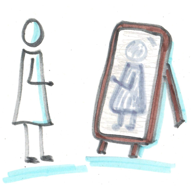 1. Was sieht die Figur, wenn sie sich im Spiegel betrachtet?