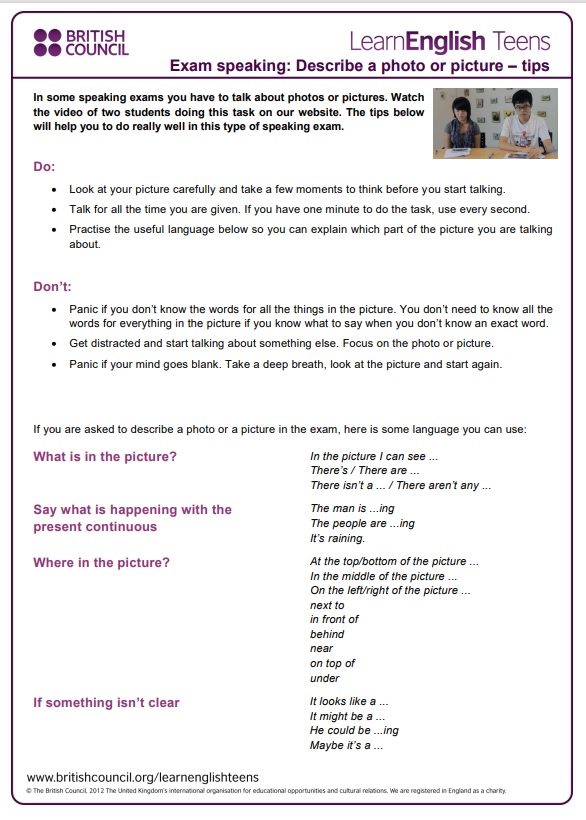 - Prepare a short presentation in which you describe the picture.