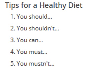 1. Give tips for a healthy diet: