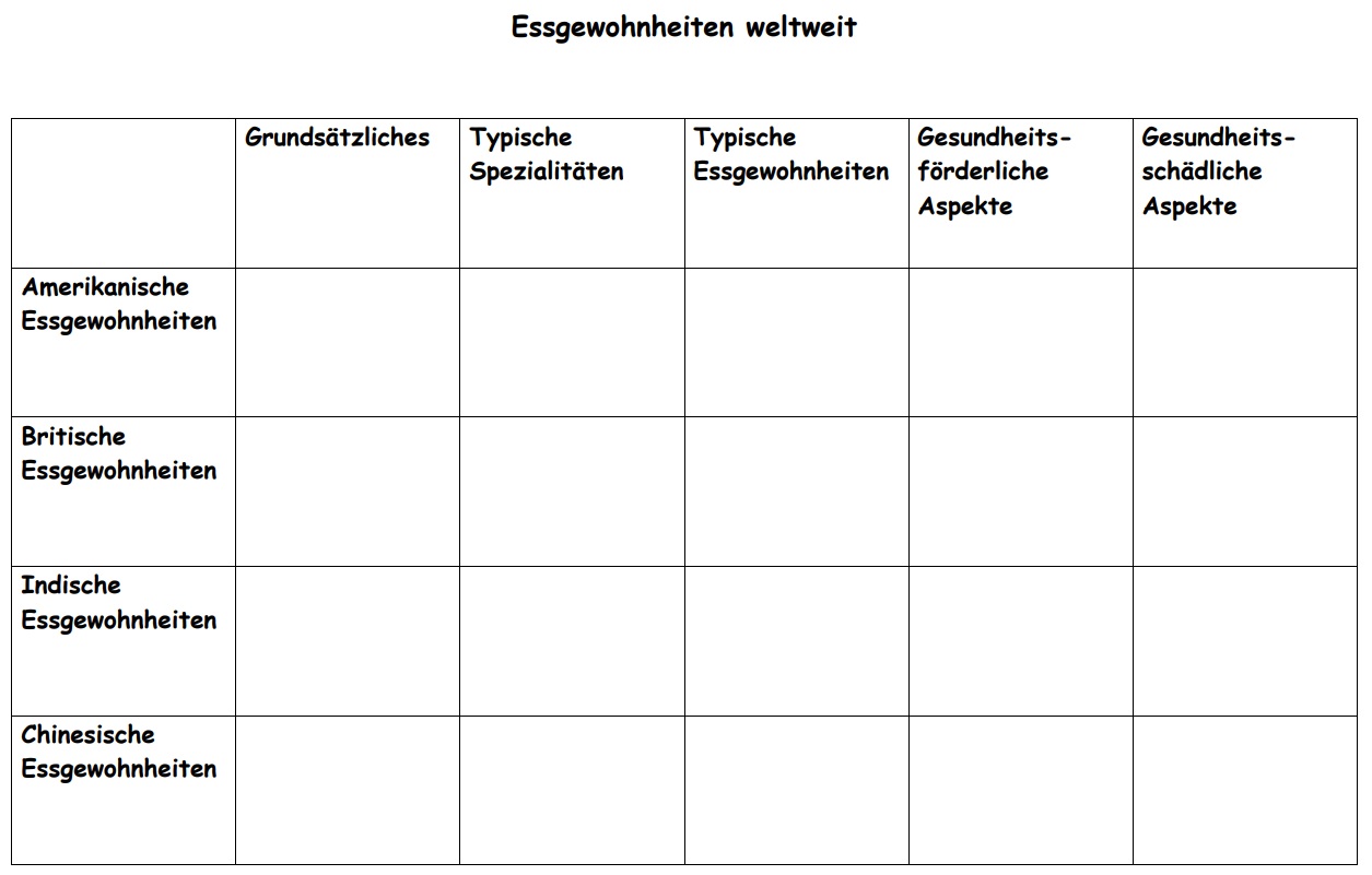 1. Suchen Sie sich einen der Texte über internationale Essgewohnheiten aus.